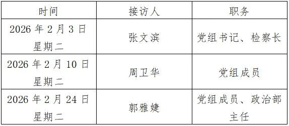 为做好新时代信访工作,努力推动解决人民群众急难愁盼问题,吉水县人民检察院常态化开展“12309检察长接访日”活动。现将2026年2月吉水县人民检察院检察长接访日安排公告如下: